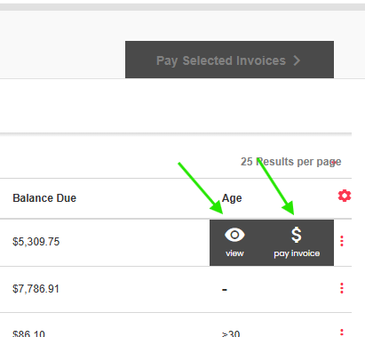 1. Click the invoice of interest and select "View" or "Pay Invoice". Clicking "View" will provide you with access to a PDF copy of the original invoice.