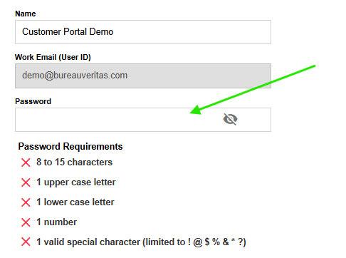 The company administrator can change their users access and account information including updating their users passwords. To assign an Admin user to your company, please contact your Bureau Veritas representative.